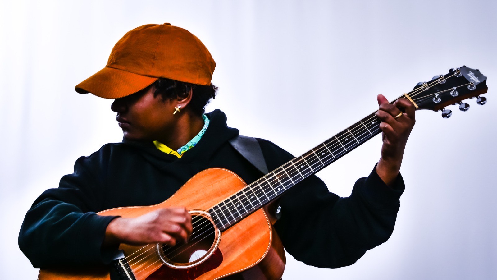 Guitare nouée sur corps étanche c’est ça, ce processus organique mystérieux. C’est son voyage, son exil, son ancrage -à l’encre bleue- sa façon d’être au monde.